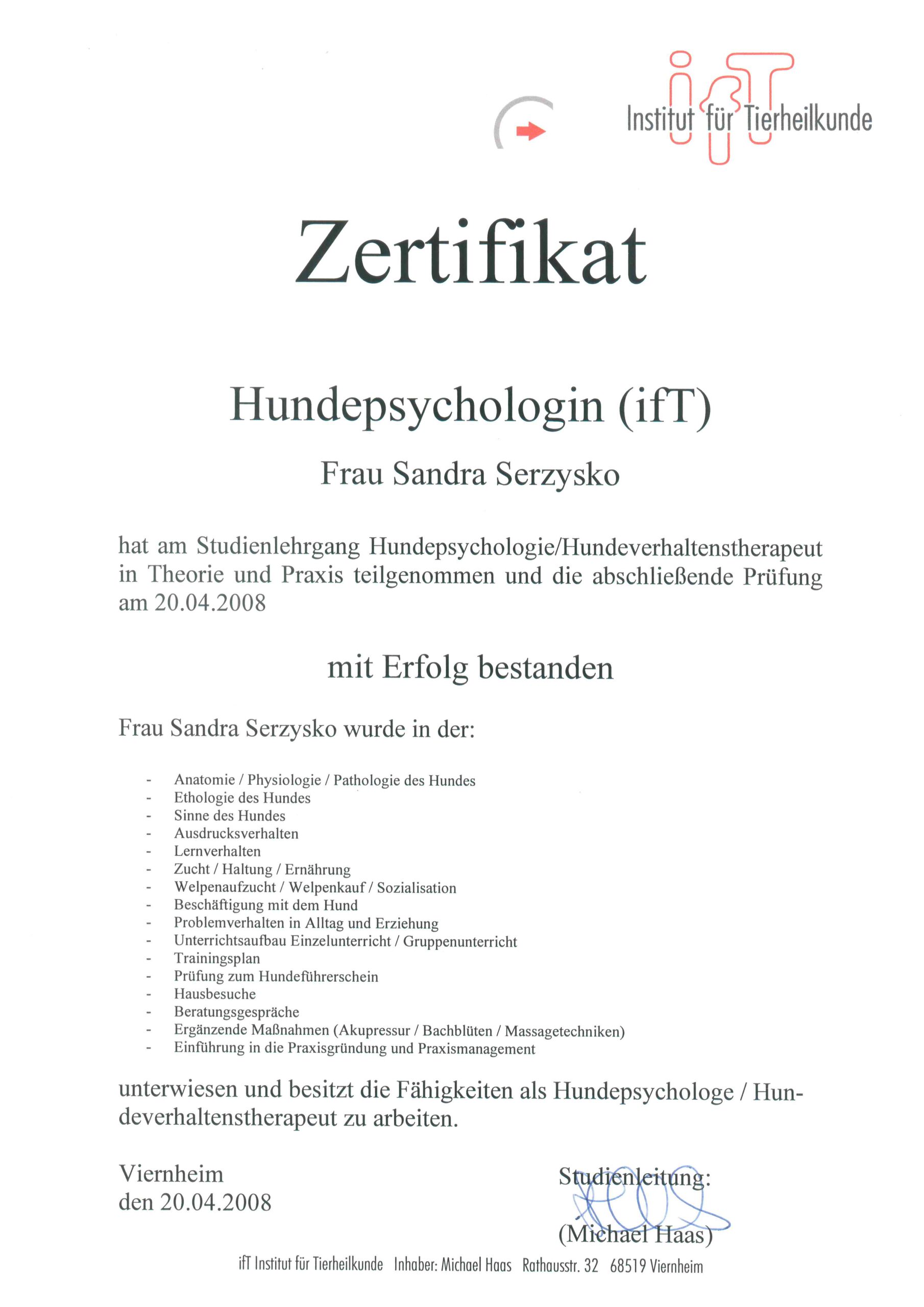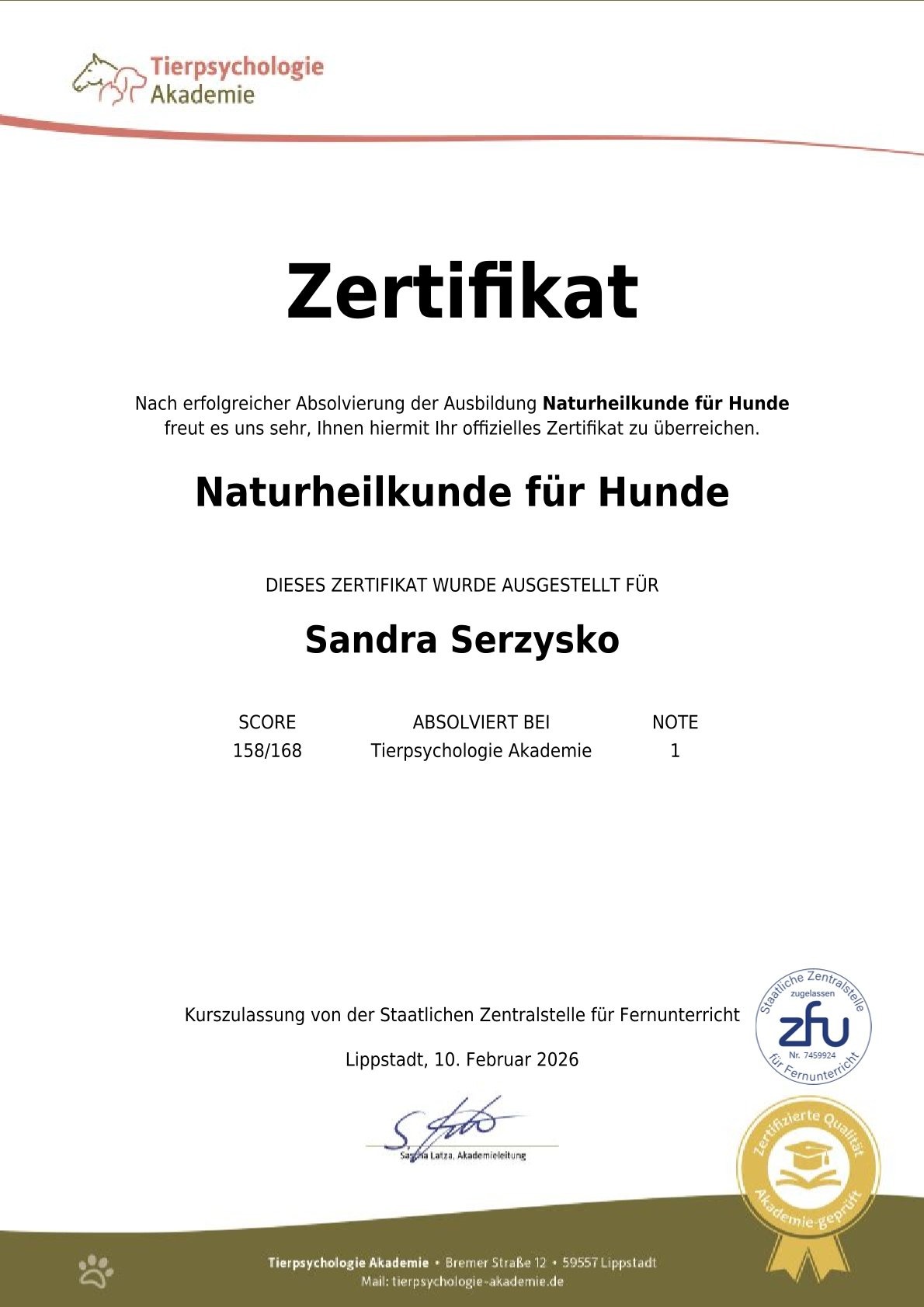 So begann ich mein zweijähriges Studium der Hundepsychologie am Institut für Tierheilkunde bei Heidelberg – mit fundierter Theorie, intensiver Praxis und inspirierenden Dozenten, die mein professionelles Fundament geprägt haben.